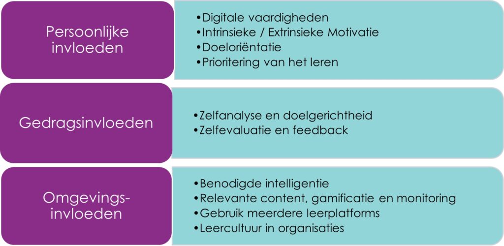 Er zijn meerdere factoren die de zelfregulering van medewerkers bij microlearning beïnvloeden. Deze factoren zijn opgenomen in Figuur 1.