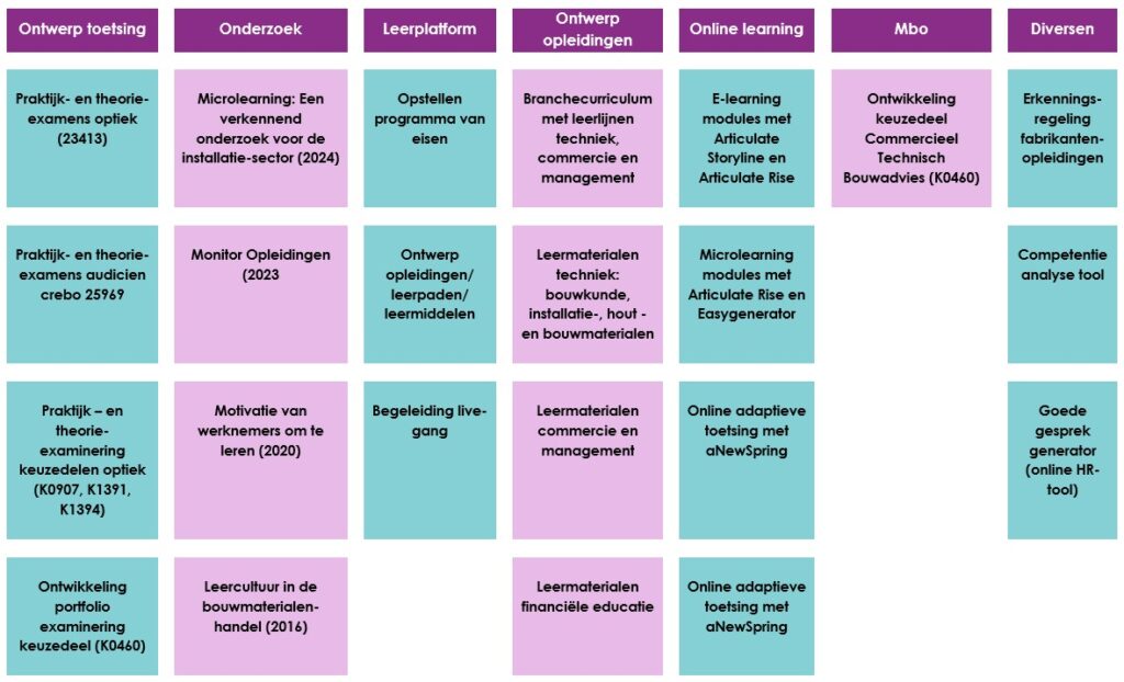 Ghislaine Hoenderboom van Partner in Leren heeft ruime ervaring met vraagstukken, projecten en activiteiten die met leren en ontwikkelen te maken hebben. Je ziet hieronder een deel van de uitgevoerde projecten en activiteiten.